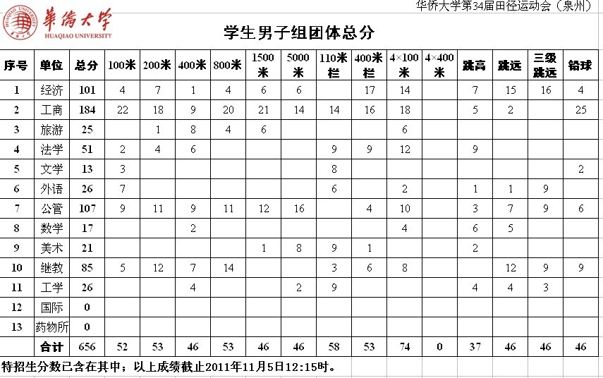 第34届校运会(泉州)团体成绩公告-5日午更新