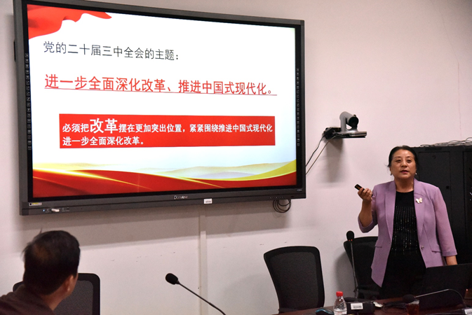 校党委常委、副校长王丽霞为9728太阳集团师生员工宣讲党的二十届三