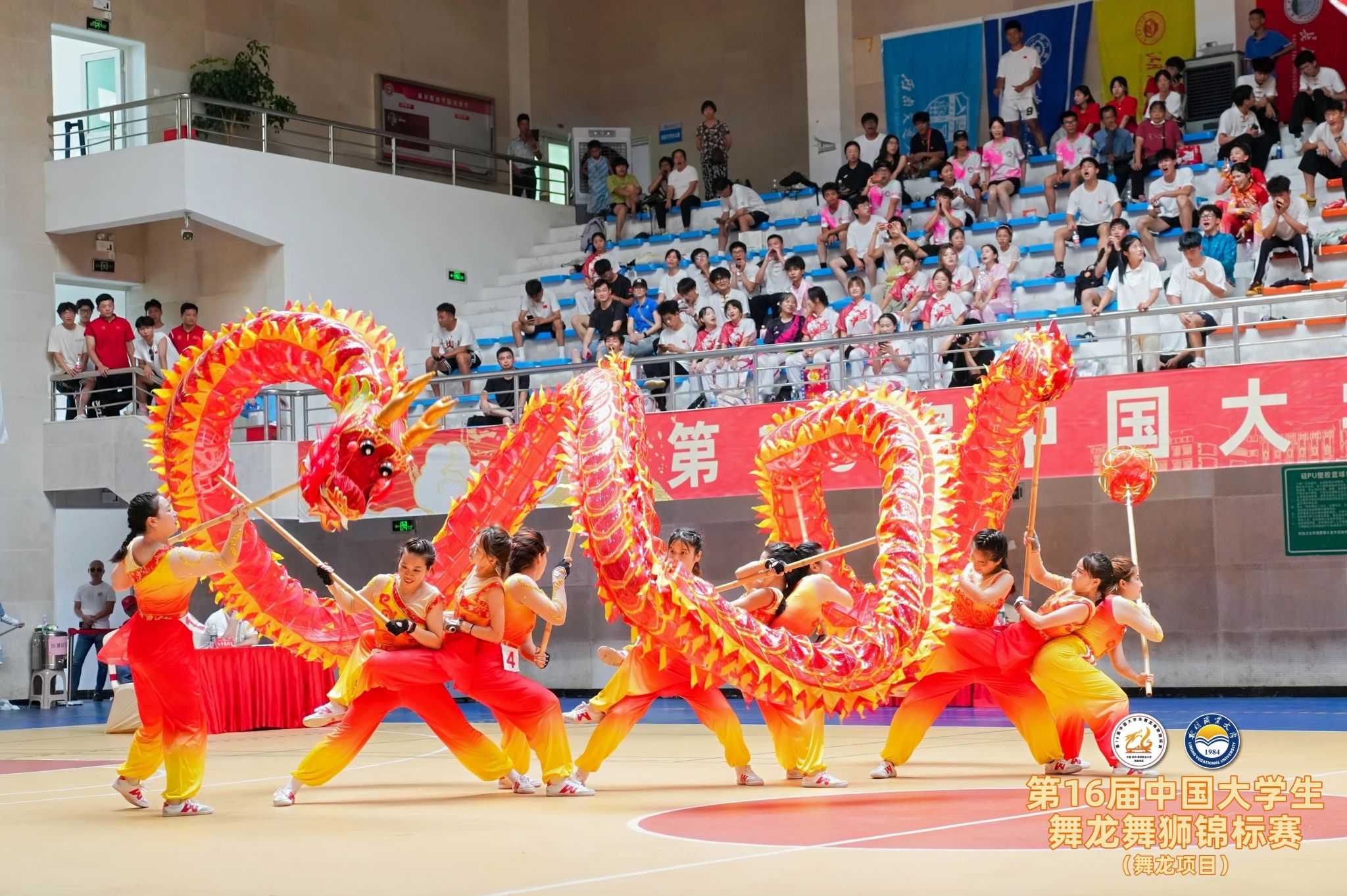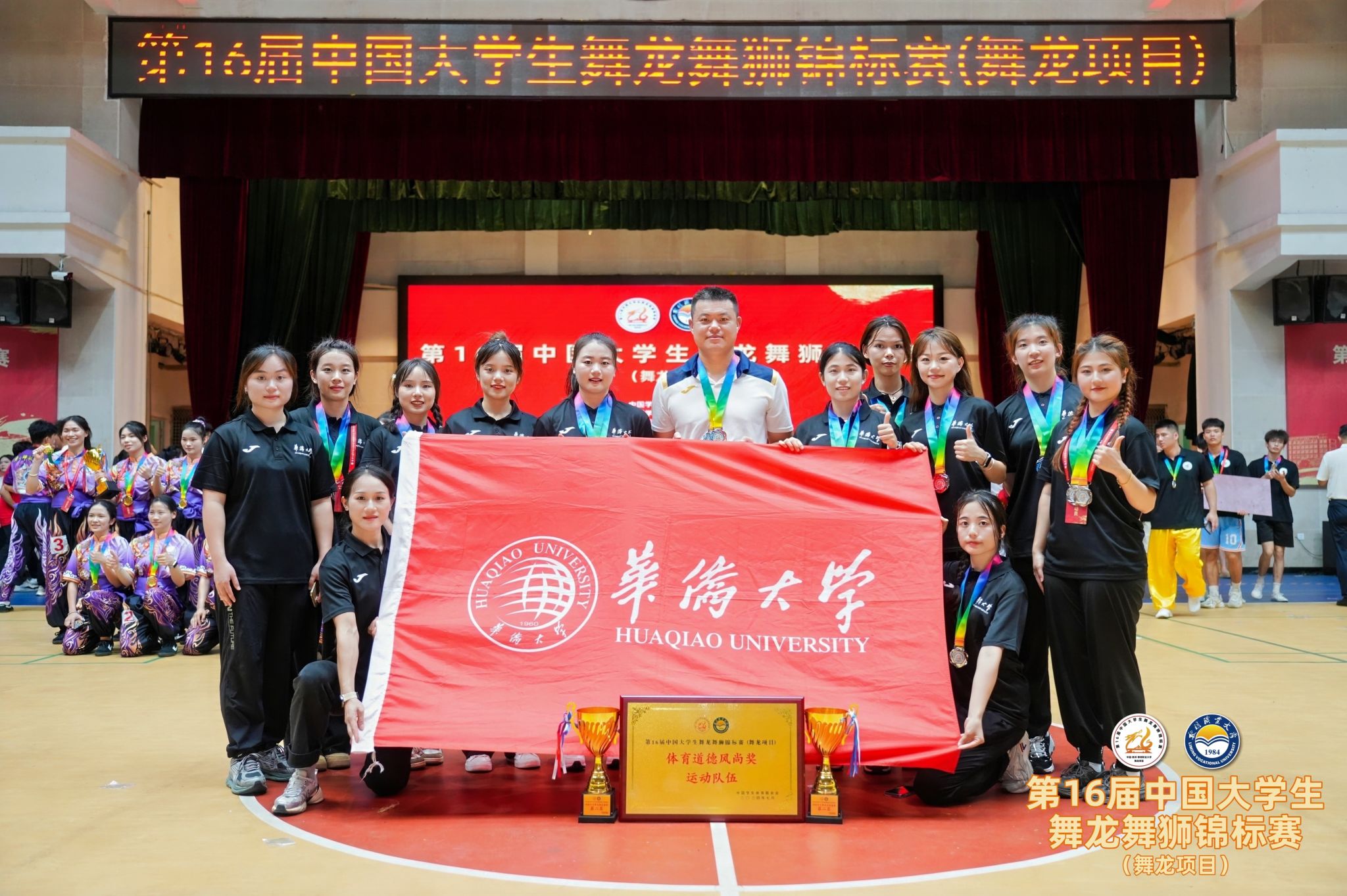 近日,第16届中国大学生舞龙舞狮锦标赛圆满闭幕。我校舞龙队经过激烈角逐,最终获得丙组(高水平组)女子规定套路第二名、自选套路第二名、体育道德风尚奖,郑海萍获得优秀运动员,肖洪波获优秀教练员称号。