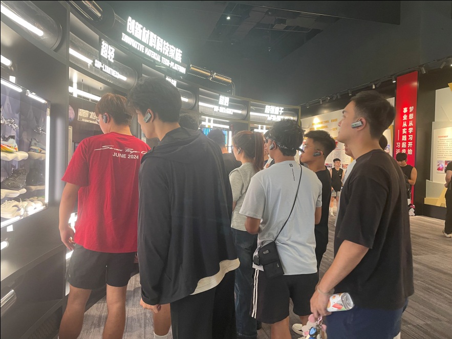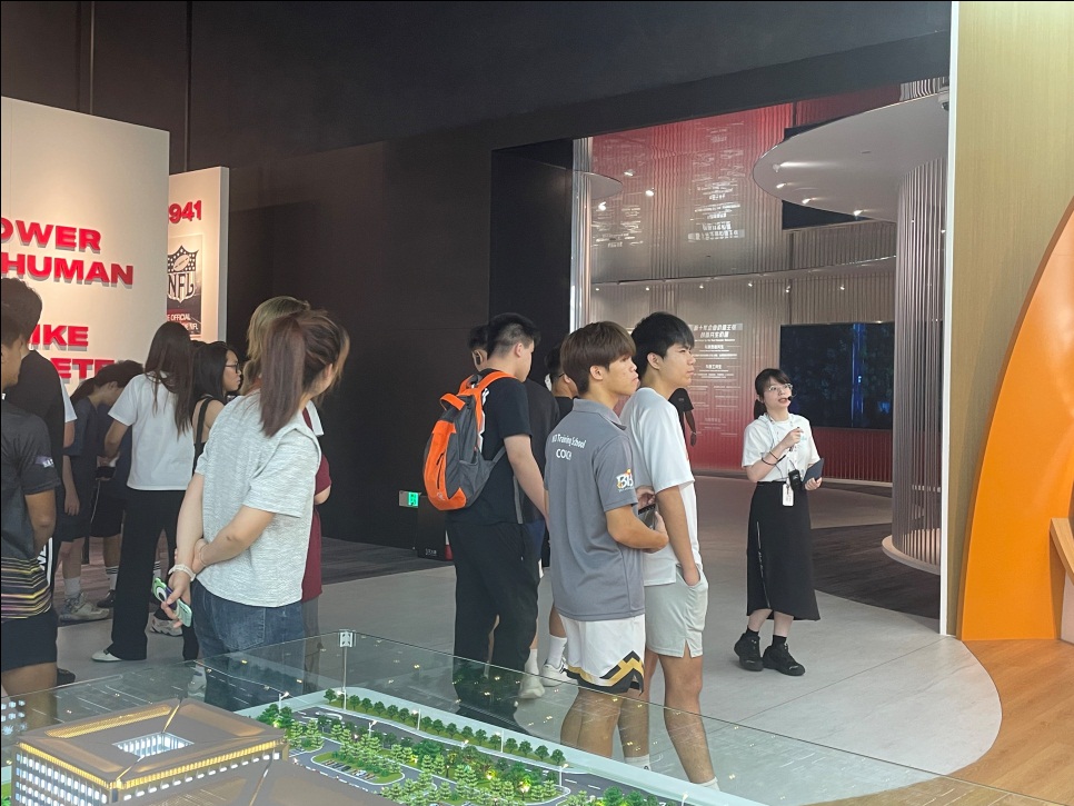 在安踏工作人员的带领下,学生们参观了安踏集团集数字化与运动产品展示于一体的全新体验中心——982创动空间。作为一个标志性的产品展示创新基地和运动文化展览馆,982安踏创动空间以其独特的设计理念和高科技的互动体验,让学生们深入感受安踏品牌的科技实力和品牌文化。