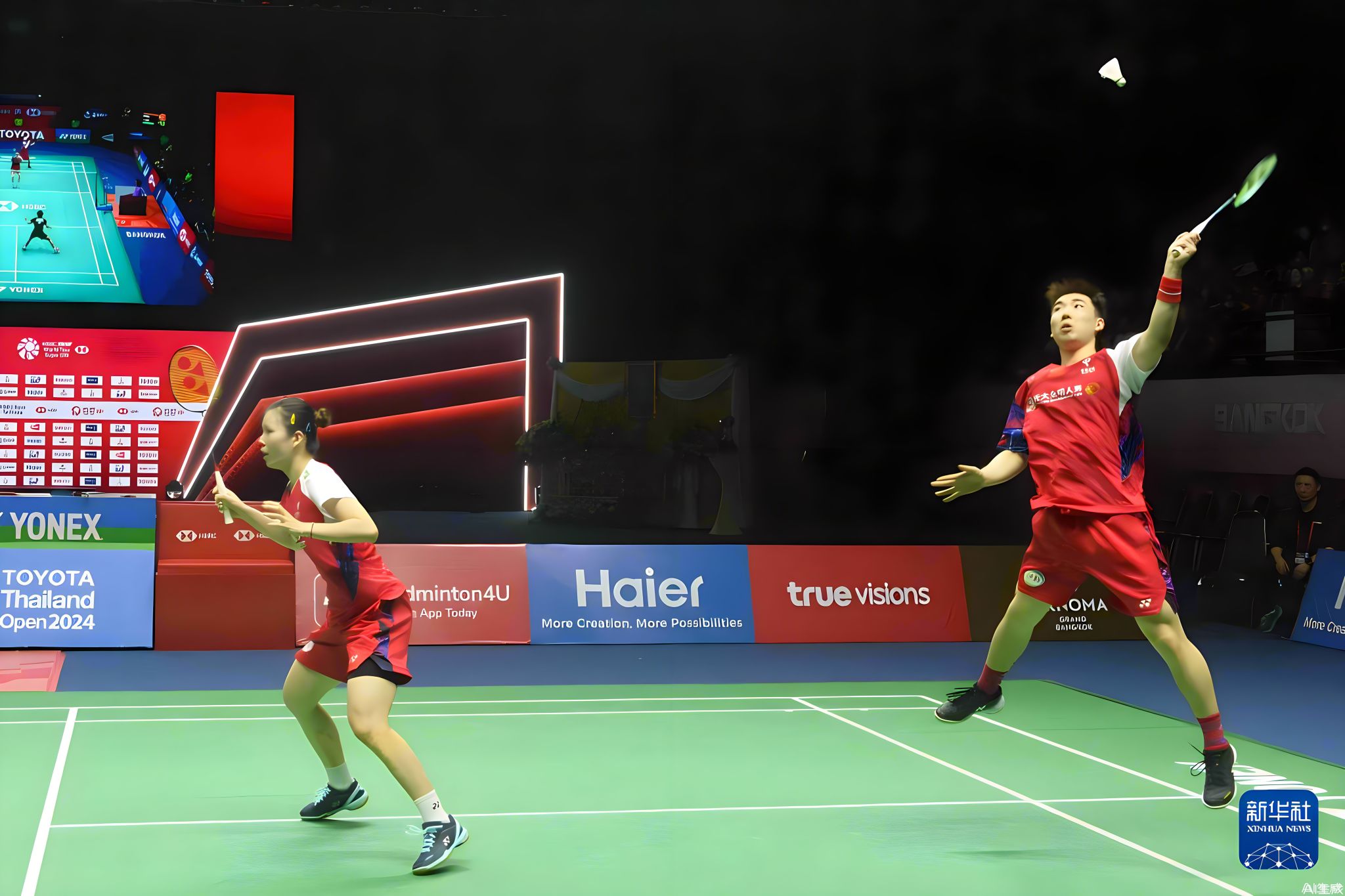 泰国公开赛是世界羽联巡回赛超级500赛事。郭新娃与搭档一路过关斩将,在混双决赛中2比1逆转本次赛事头号种子、泰国强档德差波/沙西丽夺得冠军,帮助中国队拿到了本站比赛的唯一一个冠军。