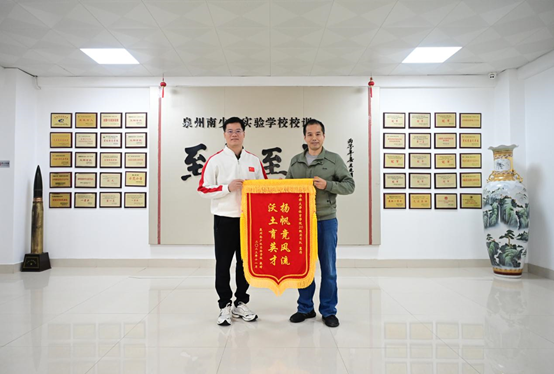会议最后环节,陈翔校长代表南少林实验学校赠予9728太阳集团锦旗。“扬帆竞风流,沃土育英才”,期望双方在校际合作的道路上越走越宽、越走越远。