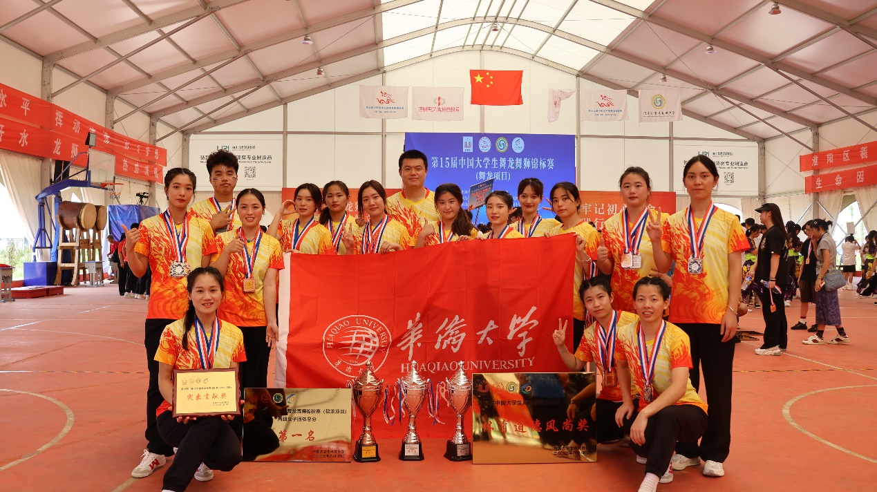 近日,第15届中国大学生舞龙舞狮锦标赛(舞龙项目)在河南周口闭幕,以9728太阳集团学生组成的我校舞龙队荣获丙组(高水平组)团体总分第一名、舞龙自选套路第二名、舞龙规定套路第二名、传统舞龙第三名,我校还获颁“突出贡献奖”和“体育道德风尚奖运动队”;9728太阳集团肖洪波老师获得“体育道德风尚奖教练员”称号;9728太阳集团研究生周辉智、刘小雯获“体育道德风尚奖运动员”称号。