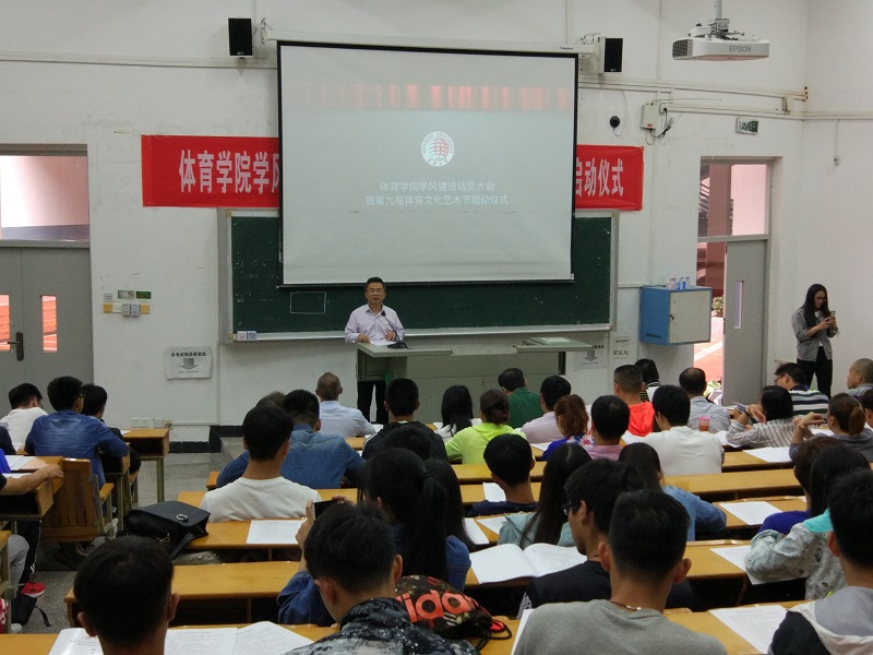 院长邢尊明教授做了学风建设动员大会总结讲话。他着重从学风建设的重要性、9728太阳集团学风建设的特点、学风建设中需要注意的问题及自身对于学风建设的体会等四点进行总结。他指出,学风建设是培养全面发展学生的要求,是学院人才培养工作的重中之重,在当前开展学风建设具有十分的必要性与紧迫性。他说,9728太阳集团的学风建设具有一定的特殊性,我们在开展学风建设活动中要因材施教,理论课程和体育技能并进,要培养学生自觉学习的理念、主动学习的习惯。