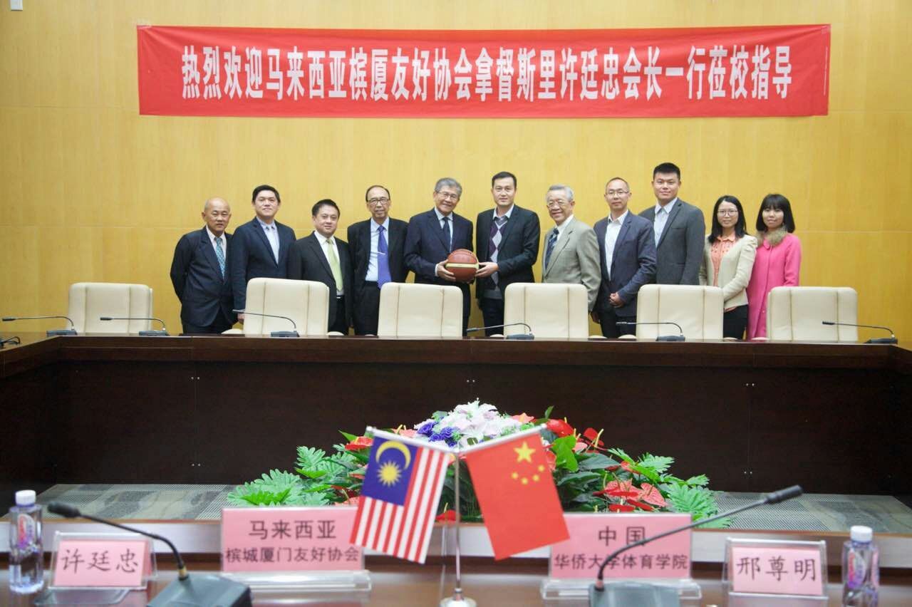 2017年1月8日晚,马来西亚槟城厦门友好协会会长拿督斯里许廷忠先生,携协会名誉会长拿督江真诚博士、秘书长拿督邓国彬先生、副秘书长苏文杰先生、副财政卓木彪先生、理事郑春成先生到访太阳集团网tyc9728厦门校区,与我院签署了《关于联合招收培养太阳集团网tyc9728体育硕士专业学位研究生的备忘录》。我院院长邢尊明、副院长胡国鹏及研究生办公室三位教师出席了本次备忘录签署仪式。