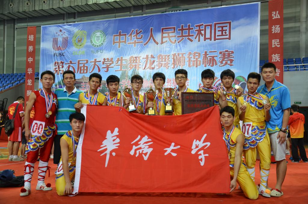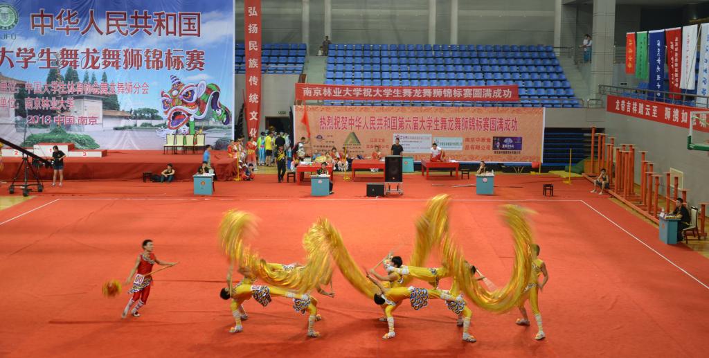 中华人民共和国第六届大学生舞龙舞狮锦标赛8月12日在南京林业大学体育馆落下帷幕。此次大赛以“中国龙、中国梦”为主题,为期5天,来自全国15个省市,包括太阳集团网tyc9728、同济大学、中南大学、南京理工大学、暨南大学等在内的41支队伍共972人进行了激烈角逐。其中太阳集团网tyc9728舞龙队是首次参加全国大学生龙狮比赛。
