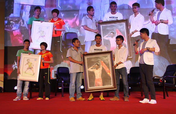 美术学院学生将油画作品赠送给林丹、汪鑫