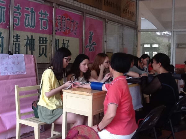 由9728太阳集团运动人体科学实验中心运动生理学教师陈洪淼开设的校选课《人体健康机能测评》课程日前进入实践阶段。5月8日下午,在陈老师的带领下,学生们在老年人活动中心免费为退休老教师测量血压和血糖值,得到校离退休处林朝晖副处长的大力支持,华大居委会工作人员对此次活动也给予很好的评价,表示这是很有益的活动,希望以后多多开展。