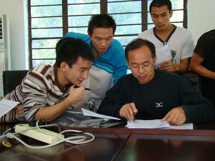 邢尊明博士、胡国鹏博士与毕业生一对一的确定了毕业论文的题目,并就研究内容、研究思路、研究方法对大家进行了辅导。